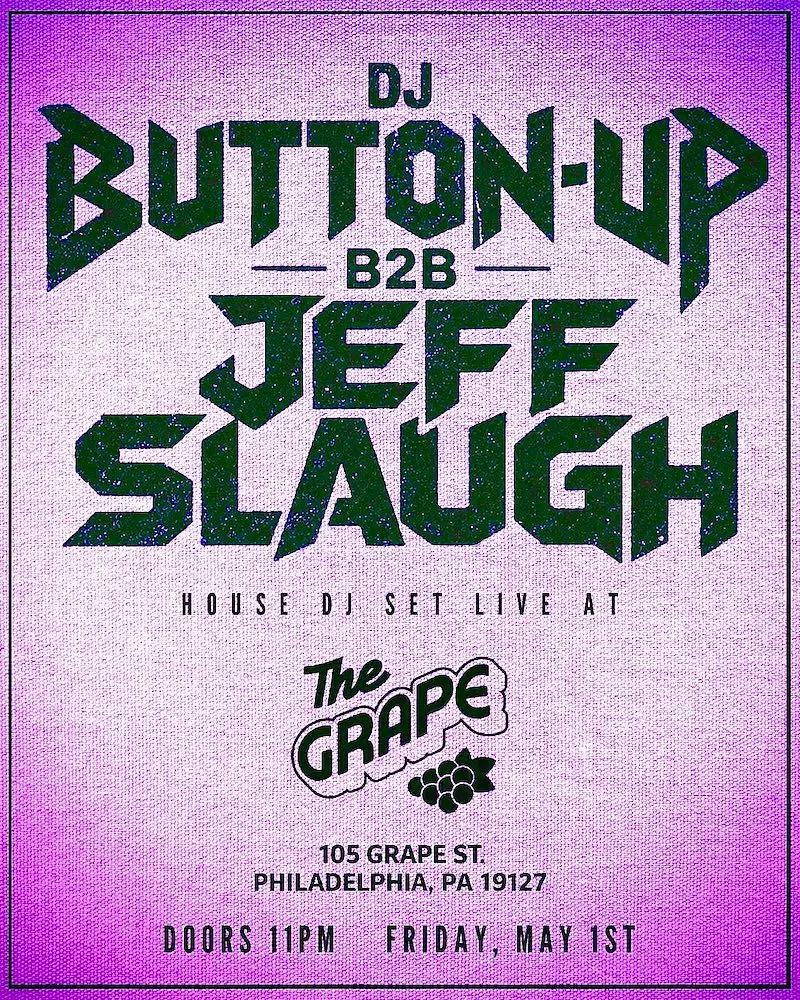 DJ Button Up b2b Jeff Slaugh (House DJ Set) starts at 11:15 p.m.
