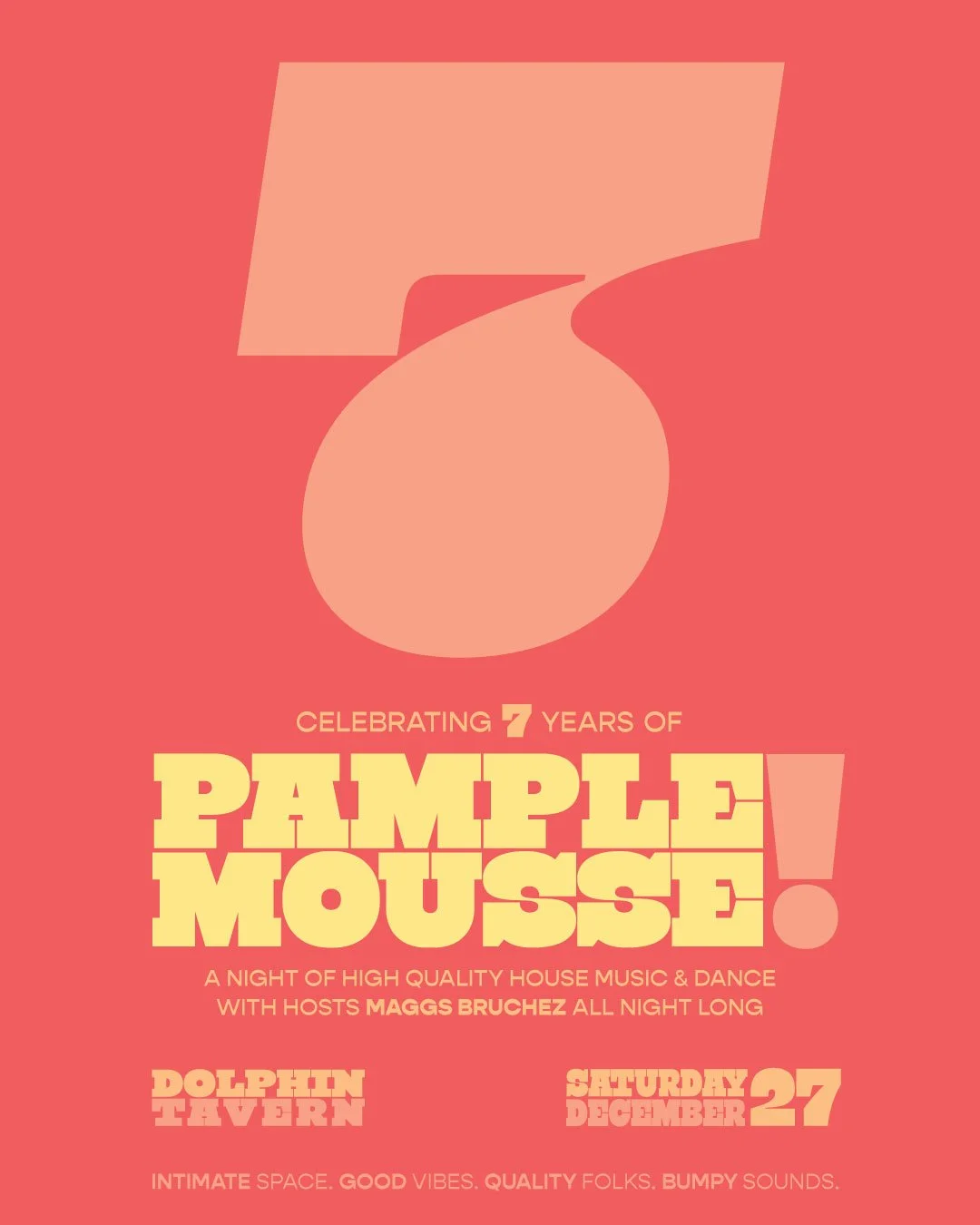 This December the Pamplemousse Party 🍊 celebrates 7 years running. 7 years!? Feels kinda crazy but we’re stoked to keep it moving and no better time to celebrate than at the Dolphin Tavern 🐬 in that lull weekend between X-mas and New Years 🍾. We’ve had many special guests over the last 7 years including Scott Diaz (for our first ever Pamplemousse in 2018), Derrick Carter, JT Donaldson, DJ Heather, Wattie Green, Andrew Emil, Recloose, Sam Tyler, Pete Moss, and a whole slew of local legends and good friends. For this year’s 7 year celebration, we’ve opted to keep it tight and feature your friendly neighborhood Pamplemousse hosts, Maggs Bruchez, alllllll. night. long to stretch out and bring you those proper house music groovers 😵. It’ll be a special night, no doubt. Join us 🚀 🎫 grab early bird 🐣 tickets to save a few bucks on the cover XXXXXXXXXXXXXXXXXXXXXXXXXXX *** featuring the sounds of *** Maggs Bruchez of Pamplemousse