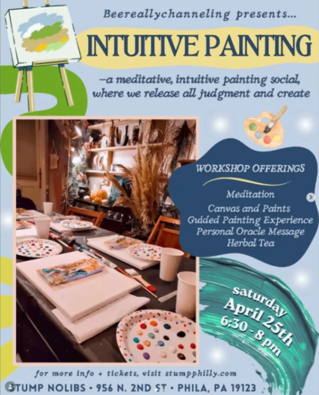 Intuitive Painting Workshop at STUMP Northern Liberties starts at 6:30 p.m. and ends at 8:00 p.m.