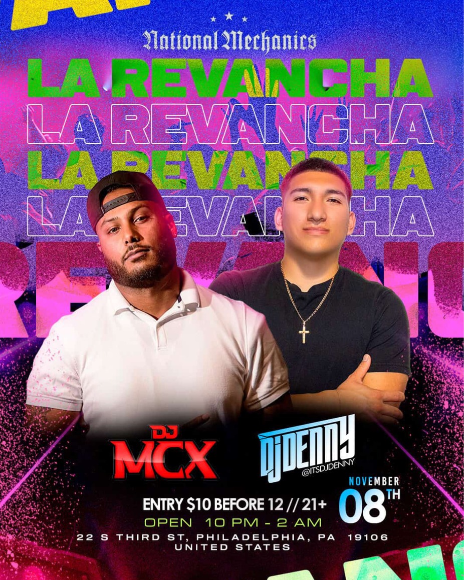Every Saturday The Party Doesn’t Stop! This Saturday 11.8... La Revancha Hosted by La Discoteka with DJ's Denny & MCX Latin music, perreo, and full party vibes all night long Starts at 10pm | $10 before 10pm Trust us… you don’t want to miss it!