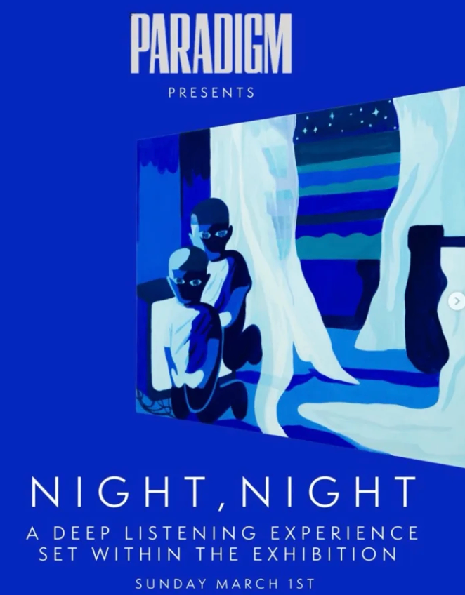 Paradigm Presents: Night, Night — A Deep Listening Experience starts at 6:00 p.m. and ends at 7:30 p.m.