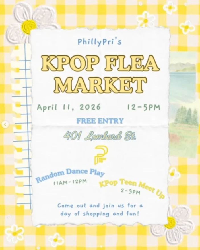 PhillyPri hosts a KPop Flea Market with shopping, a Random Dance Play session, and a KPop Teen Meet Up. This free entry event is a fun community gathering for KPop fans of all ages.