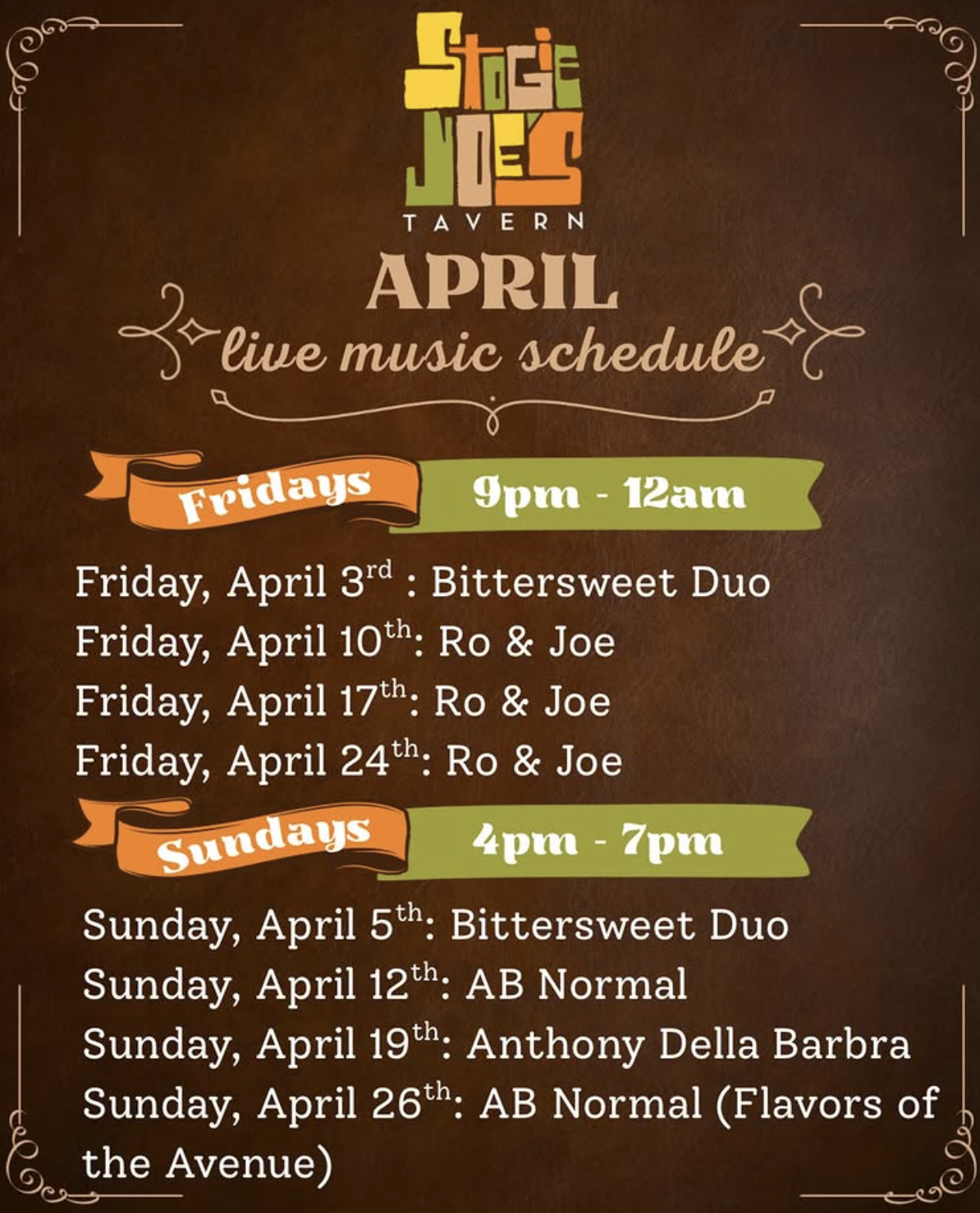Live music at Stogie Joe's Tavern on East Passyunk. Friday nights 9 PM–12 AM, Sunday afternoons 4–7 PM. No cover.