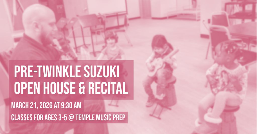 Want to learn more about the Suzuki Method? Join us for our Pre-Twinkle Open House on March 21st! This is the perfect opportunity to meet Mr. Ray and Dr. Ben and learn about Suzuki at Temple Music Prep before before registering for a full term class! Pre-Twinkle Classes provide opportunities for ve...