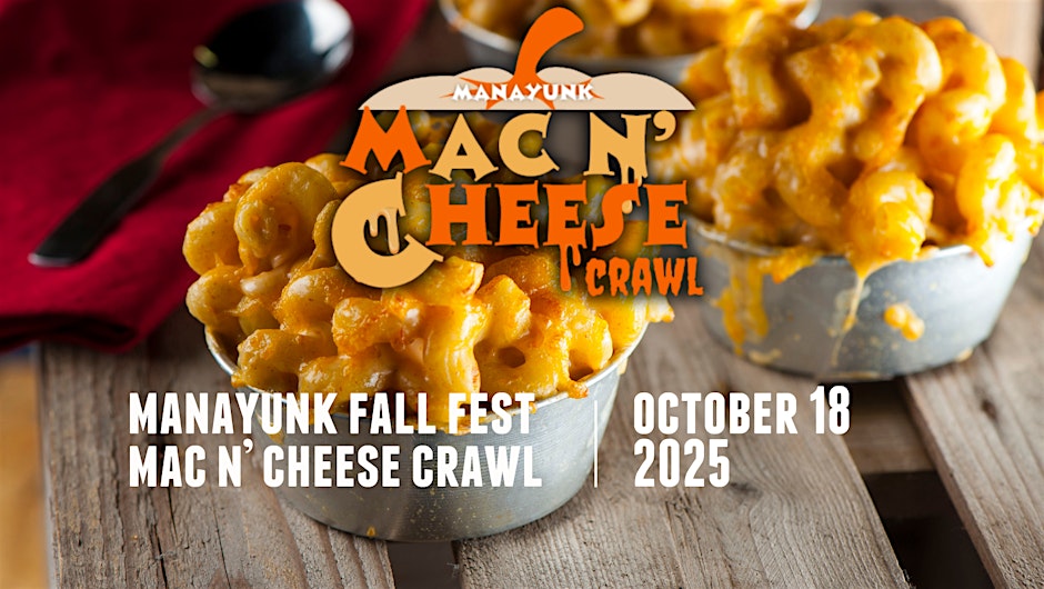 A ticketed tasting crawl during Manayunk Fall Fest featuring creative mac n’ cheese bites from restaurants along Main Street. Pick up a wristband and custom map at the Welcome Center, then stroll to participating kitchens for limited-time samples while supplies last.