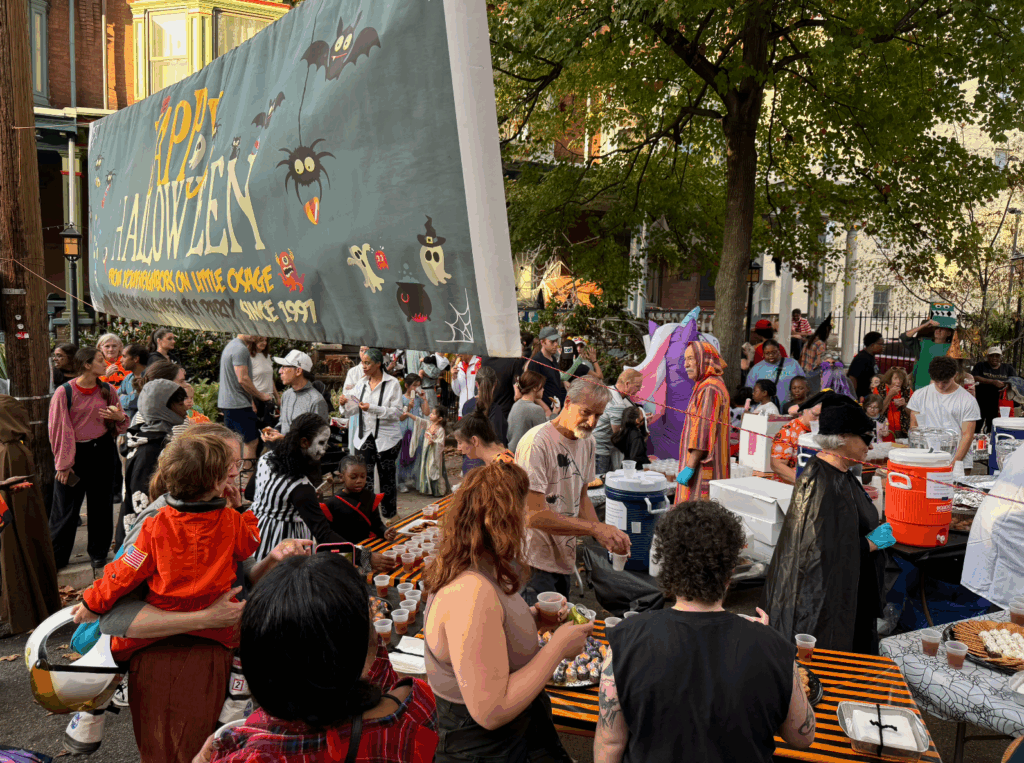 A West Philly tradition for young children and caregivers: gather on 45th Street between Baltimore and Larchwood, parade along Larchwood, and finish at “Little Osage” (42nd & Osage) for cider, baked goods, and festive treats from neighbors and local partners. Short, stroller-friendly route with brief street closures for a safe, family-focused celebration.