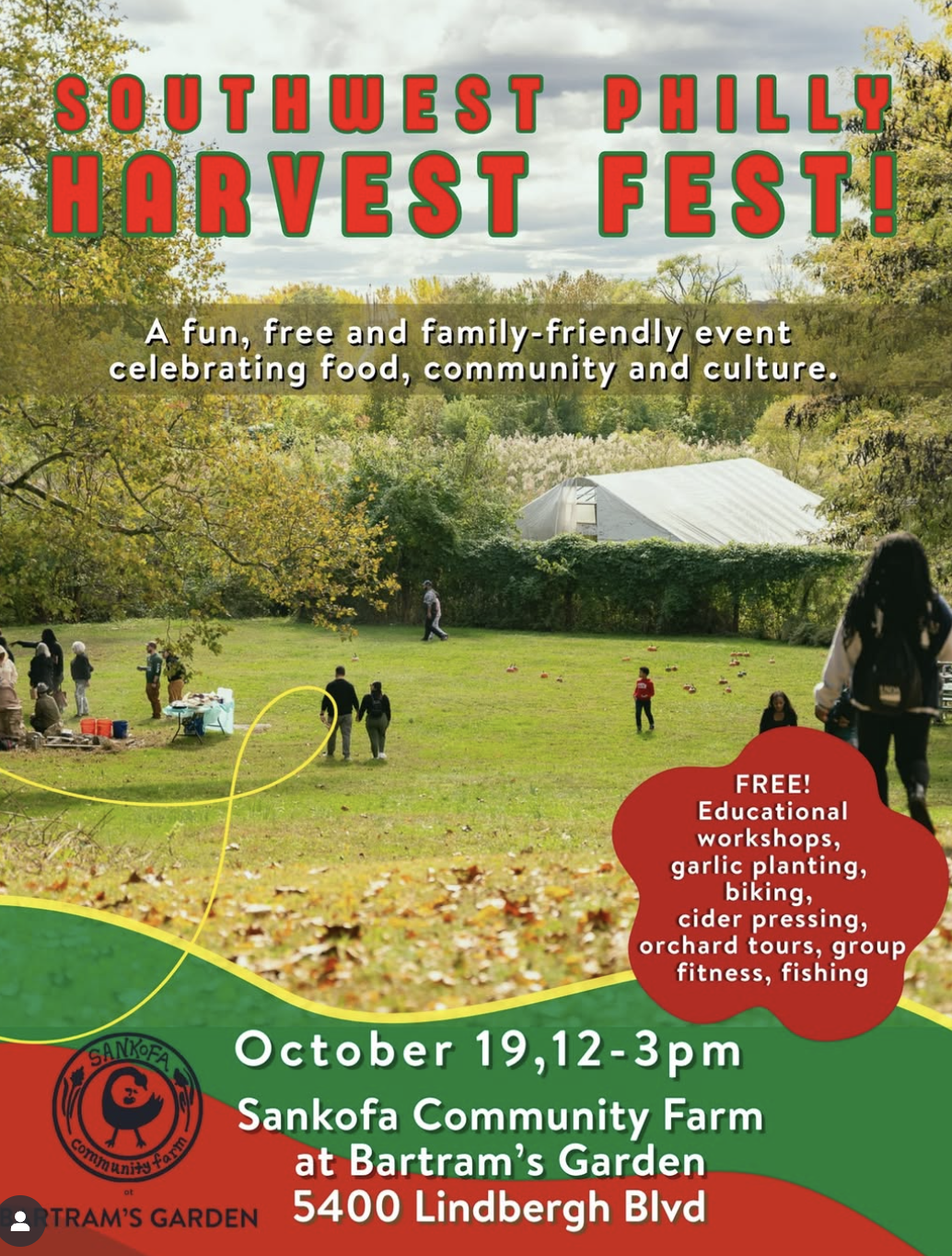 Celebrate food, community, and culture at Sankofa Community Farm. Try hands-on activities like garlic planting and cider pressing, join guided orchard tours, and ride or walk during casual biking segments. Kids and adults can take part in group fitness and even try their luck fishing. This free event welcomes all ages for a relaxed autumn afternoon outdoors.